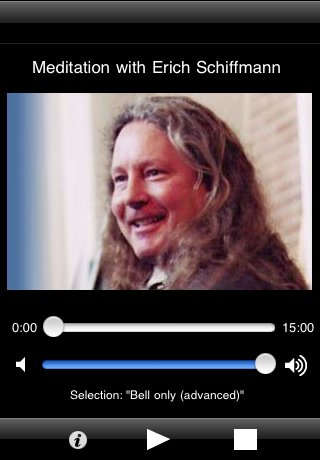 Here is a great meditation tool for both beginning and advanced meditators alike. Over 20 different guided meditations and talks by Erich Schiffmann, recorded live, full of shakti and in-the-moment wisdom!!! Each meditation has the ability for you to specify exactly how many minutes you want it to last. Meditation has been clinically proven to reduce stress, tension and lower the heart rate, leading to improved physical and mental health, calmness and peace-of-mind. Most meditators face the problem of how to know when to stop meditating: this usually means opening your eyes and looking at a clock, or if you have an alarm, turning off the annoying buzzer when the time is up. In either case, your meditation has been interrupted and spoiled. With iMeditateWithErich, you are guided into and out of the meditation - and you can specify how long you want the silence in the middle to be! Erich Schiffmann has gained international recognition for his unique approach to yoga and meditation. His teaching conveys a complete experience of yoga, what he calls "the art of living." His emphasis is that of "moving into stillness" in order to be "guided from within," and he uses meditation, asana, pranayama, deep relaxation and discussion to elicit this experience. Erich taught yoga at the Krishnamurti School in England for five years, has studied yoga in India and Europe, and now lives in Santa Monica, CA, where he teaches local classes, workshops, teacher trainings and retreats. He is the author of YOGA: The Spirit and Practice of Moving into Stillness. |
